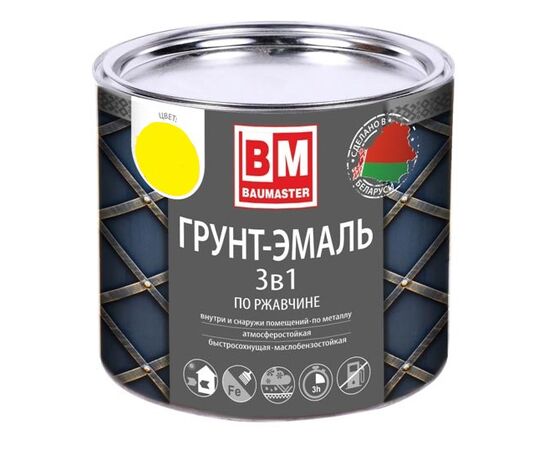 ГРУНТ-ЭМАЛЬ по ржавчине 3 в 1 "BAUMASTER", желтая RAL 1003, 1,6 кг