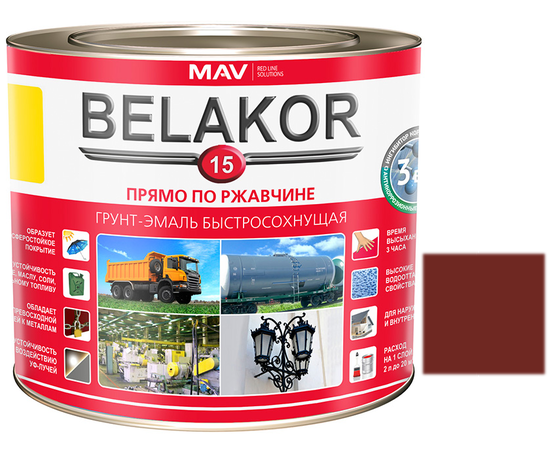 Грунт-эмаль BELAKOR 15 прямо по ржавчине 3 В 1 быстросохнущая (кр-кор) матовый 1,0л (1,0кг)