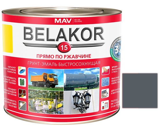 Грунт-эмаль BELAKOR 15 прямо по ржавчине 3 в 1 быстросохнущая RAL 7011 (серый) матовый 1,0л (1 кг)