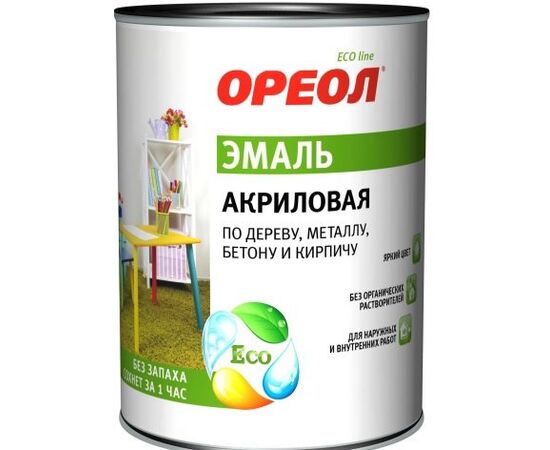 Эмаль акриловая "ОРЕОЛ" матовая белая 0,9 кг.