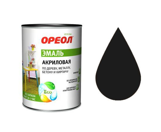 Эмаль акриловая "ОРЕОЛ" матовая черная 0,9 кг.