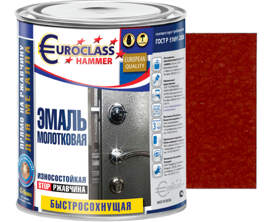 Эмаль декоративная "EUROCLASS" с молотковым эффектом вишневая 0,8 кг, Россия