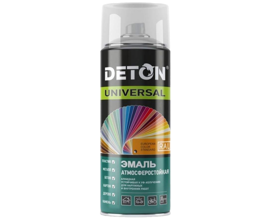 Эмаль алкидная DETON "UNIVERSAL" атмосферостойкая, черная глянцевая, 520 мл, аэрозоль