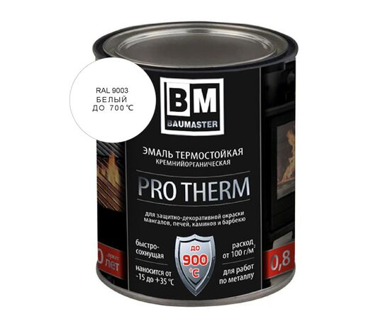 Эмаль BAUMASTER термостойк., белая, до 700°С, 0,8кг, арт.9003