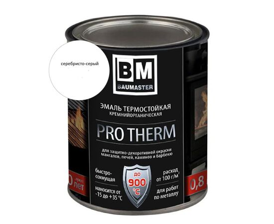 Эмаль BAUMASTER термостойк., серебристо-серая, до 600°С, 0,8кг.