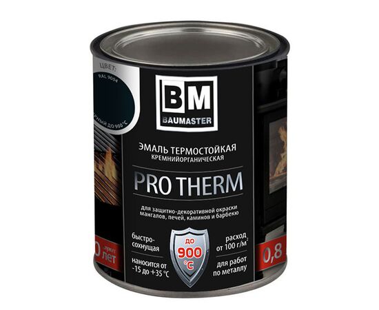 Эмаль BAUMASTER термостойк., черная матовая, до 900°С, 0,8кг, (9004)
