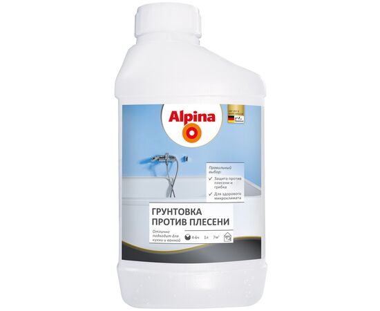Alpina Грунт против плесени — настоящее оружие для защиты кухни и ванной комнаты от поражения плесенью и грибком. Эта готовая к применению грунтовка была разработана специально для жилых помещений с особо высокой нагрузкой из-за влажности. Грунтовка обеспечивает в помещении благоприятный здоровый микроклимат. Alpina Грунт против плесени применяется на различных основаниях: штукатурки, шпатлевки, бетон, кирпич, гладкая кирпичная кладка и старые дисперсионные краски. Грунтовка значительно сокращает расход краски на последующих этапах работ и позволяет создать равномерное и визуально безупречное финишное покрытие. Alpina Грунт против плесени — это оптимальное решение для долговременной защиты Вашего дома от грибка и плесени.