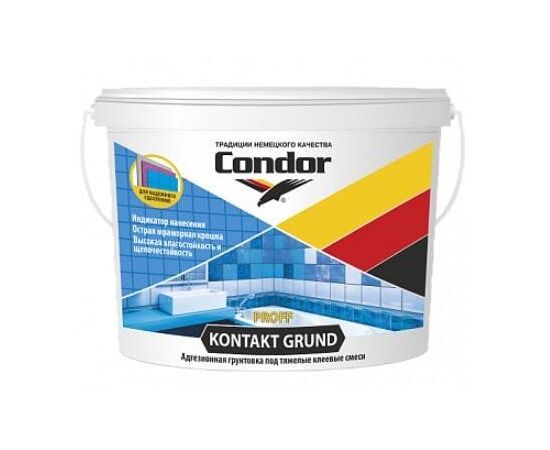 Грунтовку Condor Kontakt Grund наносят на стены для увеличения адгезии с облицовочными материалами. Преимущественно используется на гладких основаниях под тяжелые штукатурные и клеевые смеси. Индикатор розового цвета помогает равномерно распределить грунтовку на поверхности. Грунтовка используется для работ внутри и снаружи помещения. Объем ведра — 1,4 кг.