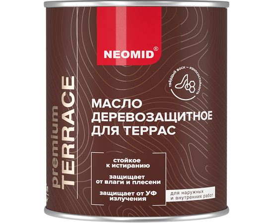 NEOMID PREMIUM TERRACE — масло для защиты от влаги, плесени и декоративной обработки деревянных поверхностей внутри и снаружи помещений.