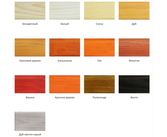 - Лак выпускается как белым и бесцветным, так и тонированным в натуральные оттенки дуба, сосны, красного и розового дерева, вишни, рябины, махагона, калужницы, палисандра, ореха и других пород дерева.