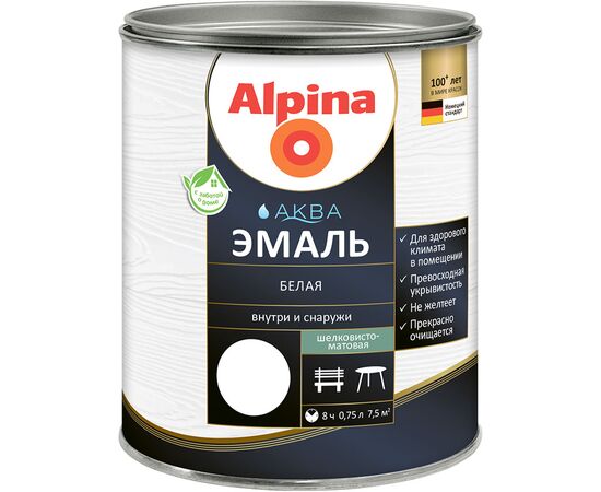 Эмаль акриловая водно-дисперсионная Alpina Аква эмаль белая шелковисто-матовая, 0,9 л