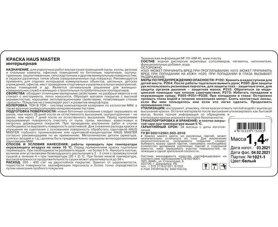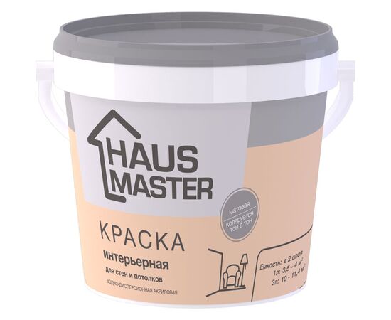 Краска HAUS MASTER интерьерная белая матовая 1л (1,4кг)