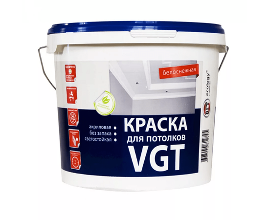 Акриловая краска для потолков «Белоснежная» подходит для окрашивания бетонных, кирпичных, гипсокартонных поверхностей в помещениях с нормальной влажностью.