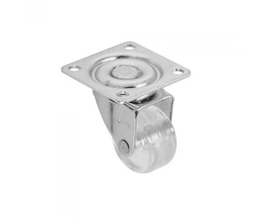 Колесо поворотное D-35 мм прозрачное на площадке - подвижный элемент мебельной конструкции, используемый в креслах, передвижных столах и тумбочках. Крепится к мебели посредством металлической пластины (площадки).