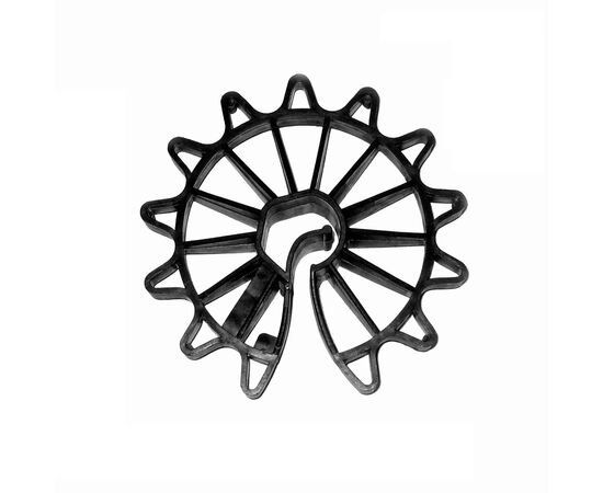 Применяется в монолитных конструкциях при возведении колонн и стен. В сердцевине фиксатора находится специальный "зажим - лапка", который позволяет надёжно закрепить фиксатор на стержне арматуры. Подбирается фиксатор звёздочка в зависимости от требуемого защитного слоя, который необходимо создать, и от диаметра арматуры, на которую планируется его закрепление.
