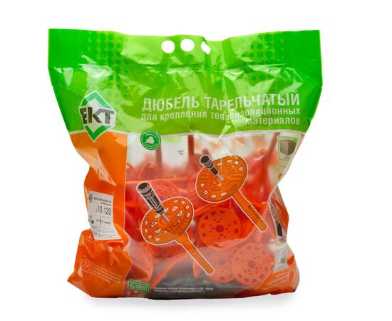 Дюбель тарельчатый 10х120 с полиамидным гвоздем DTI-10P, ЕКТ (пакет/75шт)