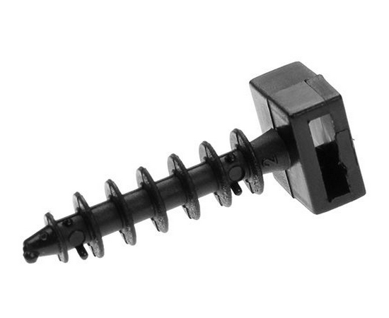 Используется для крепления кабельных хомутов при необходимости крепления кабелей по бетонным, деревянным. кирпичным и им подобным несущим поверхностям. Рабочая часть дюбеля выполнена в виде пластин, которые при забивании сминаются определённым образом и препятствуют вытаскиванию дюбеля.