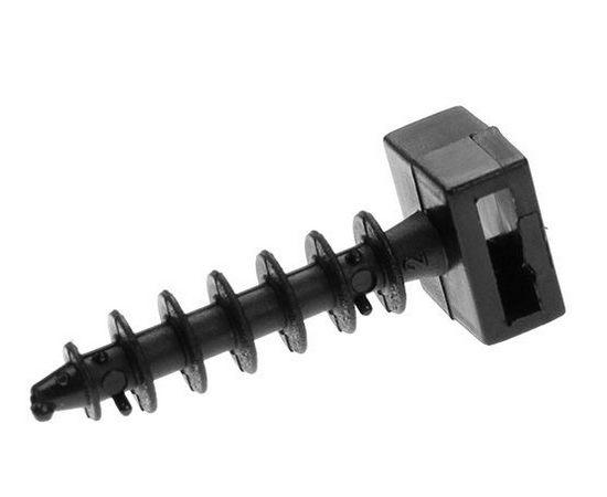 Используется для крепления кабельных хомутов при необходимости крепления кабелей по бетонным, деревянным. кирпичным и им подобным несущим поверхностям. Рабочая часть дюбеля выполнена в виде пластин, которые при забивании сминаются определённым образом и препятствуют вытаскиванию дюбеля.