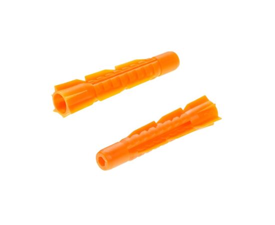 Универсальный дюбель из полипропилена с повышенной эластичностью предназначен для использования его как в сплошном основании, так и в полостной кладке (полые бетонные блоки, кирпич с отверстиями и т.д.). В плотной кладке дюбель ведет себя как обычный трёхлепестковый дюбель и обладает всеми его преимуществами. При попадании в полость дюбель наворачивается на шуруп и завязывается в плотный узел, который надёжно крепит шуруп в стене.