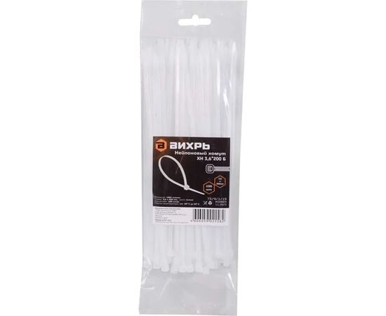 Хомут кабельный, белый 4(3,6)х200 (100 шт/упак)