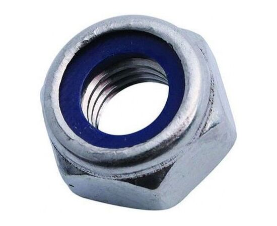 имеет нейлоновое кольцо, которое фиксирует гайку и предотвращает последующее откручивание соединений. Изготовлена из конструкционной углеродистой стали и оцинкована. Применяется в машиностроении, приборостроении, при сантехнических работах и общестроительных работах.