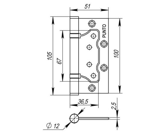 Универсальная дверная петля без врезки Punto 200-2B изготовлена из стали, подходит для дверей левого и правого открывания. Гальваническое покрытие прошло тест на устойчивость к коррозии в соляном туманеи соответствует 1 классу ГОСТ. В петле установлены втулка-подшипники и стальной стержень, что обеспечивает работоспособность 200 000 циклов открывания/закрывания. Максимальная нагрузка на 2 петли 30 кг, на 3 петли 40 кг.