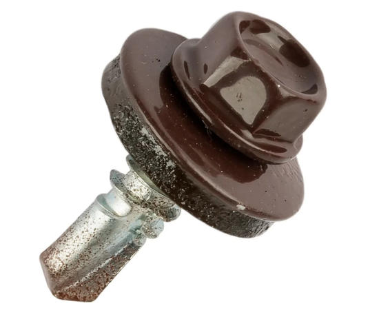 Кровельный саморез по металлу используется при монтаже кровельного полотна к металлической обрешетке. Изделие изготовлено из стали С1022 и оцинковано для защиты от коррозии. Шестигранная головка обладает шайбой с EPDM-уплотнителем. Саморез окрашен в шоколадно-коричневый цвет при помощи порошковой полиэфирной краски.