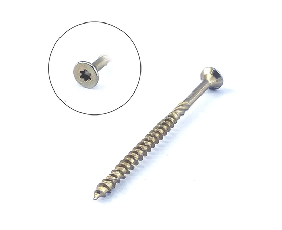 Конструкционные саморезы используются при строительстве деревянных конструкций – каркасов, беседок, кровельных систем, а также для внутренних работ. Благодаря особой технологии закалки стали они не ломаются. Многослойное цинковое покрытие надёжно защищает саморез от коррозии, позволяя использовать его в уличных конструкциях. Острый кончик с режущей кромкой обеспечивает вхождение в древесину с первого оборота, волнообразные насечки на резьбе перемалывают стружку, фреза за резьбой расширяет отверстие, облегчая закручивание, насечки на обратной стороне головки обеспечивают самозенковку .