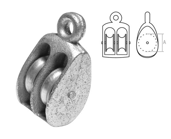 Стальной оцинкованный блок с двумя металлическими шкивами применяется для изменения направления движения для тросов и канатов, увеличения силы в грузоподъемном оборудовании.