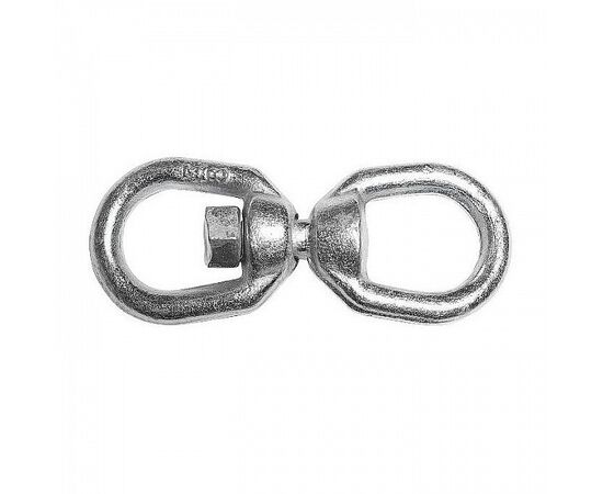 Вертлюг изготовлен из оцинкованной углеродистой стали и предназначен как соединительное звено между двумя тросами, цепями, позволяющее каждому из них вращаться вокруг своей оси. предотвращая их от скручивания.