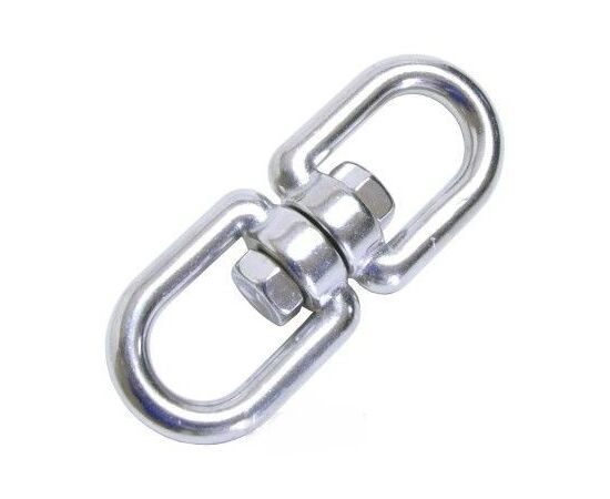 Изготовлен из оцинкованной углеродистой стали и предназначен как соединительное звено между двумя тросами, цепями, позволяющее каждому из них вращаться вокруг своей оси, предотвращая их от скручивания.