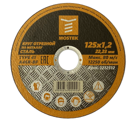 Круг MosTek отрезной 125х1,2х22,2 мм (сталь) T41 A46R-BF