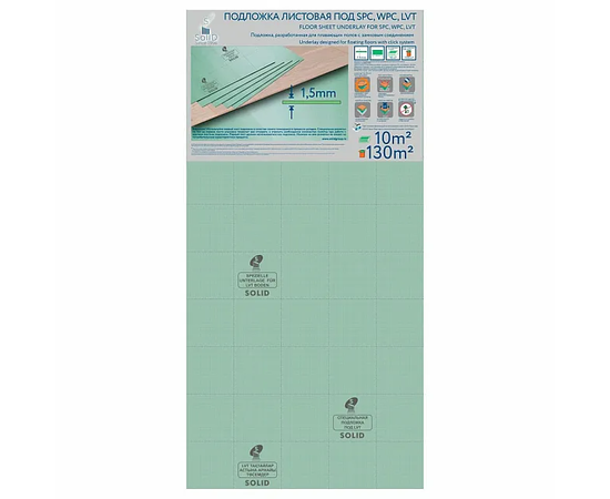 Подложка ПГ под SPS, LVT, WPC 1050х500х1,5/10.5м2/126м2 Зеленая (Солид)