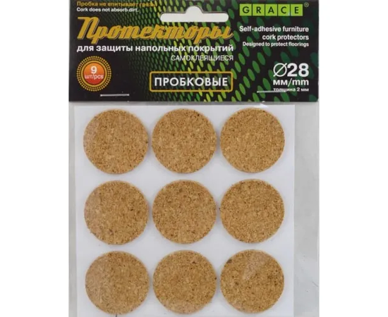 Подкладка пробковая D 28 мм (9 шт), GRACE используется в качестве подложки (подпятника) для мебели во избежание царапин на полу и для уменьшения шума