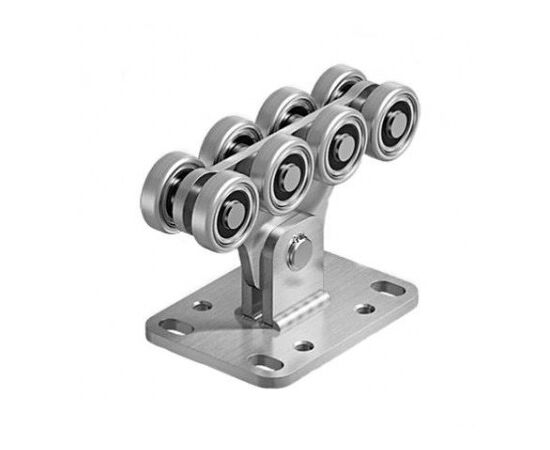 Опора роликовая со стальными роликами является важным элементом откатной системы и предназначена для перемещения створки самонесущих откатных ворот в заданном направлении. Опора SGN.01.150 подходит для створки ворот массой до 450 кг. Используется совместно с направляющей шиной SG.01.x При монтаже опоры к фундаменту рекомендуется использовать подставку SGN.01.200, которая значительно облегчит монтаж и обеспечит регулировку ворот. Подставка крепится к фундаменту с помощью анкерных болтов либо сваркой к предварительно заложенному в фундамент элементу (например, швеллеру).