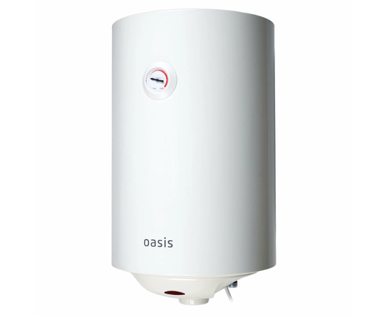 Электрический накопительный водонагреватель Oasis VL-30L - служит для горячего водоснабжения негазифицированных домов или квартир в период планового и внезапного отключения горячей воды. Главным преимуществом круглой формы устройства является минимальная теплопотеря. Вода, поступившая из водопровода в бак, нагревается до 35-75 градусов посредством нагревательного элемента, установленного внутри. Устройство автоматически поддерживает необходимую температуру в течение 48 часов. Регулировка степени нагрева воды осуществляется при помощи регулятора, расположенного снизу. На корпусе предусмотрен механический датчик текущей температуры воды. Внутренний бак имеет высокопрочное эмалированное покрытие, что предотвращает образование коррозии и, как следствие, позволяет избежать утечек и продлевает срок эксплуатации водонагревателя.