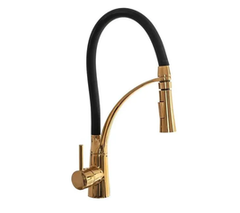 Смеситель для кухонной мойки PEA Gaspar Black Gold K001775 - стильная модель с высоким гибким изливом. С помощью двухрежимной лейки удобно ополаскивать продукты и посуду ,а также наполнять большие емкости. Смеситель соответствует самым высоким европейским стандартам, он экономичен в расходовании...