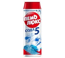 Мощная формула Пемолюкс Сода 5 с содой и мягким абразивом не содержит опасных химикатов и подходит для чистки керамических, эмалированных, металлических и других твердых поверхностей на кухне, в ванной и в прочих помещениях. С осторожностью использовать на полированных и пластиковых поверхностях.