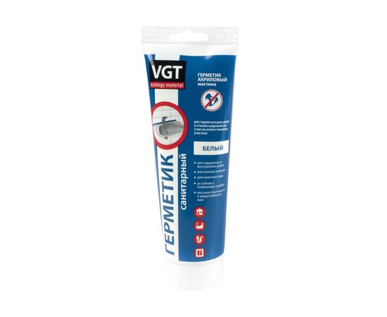 Герметик акриловый (мастика) для нар/внутр работ санитарный, белый, 0,35 кг, туба