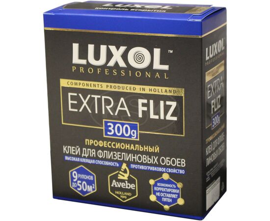 LUXOL «EXTRA FLIZ» — специальный клей для наклеивания обоев на флизелиновой основе путём нанесения клея прямо на стену. Он не оставляет пятен, высыхает прозрачным и не образует комков, создаёт превосходное скольжение обоев. Отличные расходные характеристики без потери качества, легкая коррекция обоев при наклеивании и противогрибковое свойство.