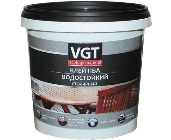 Клей ПВА водостойкий - для ответственных столярных работ, требующих высокой прочности и водостойкости клеевого шва. Можно применять для склеивания садовой мебели.