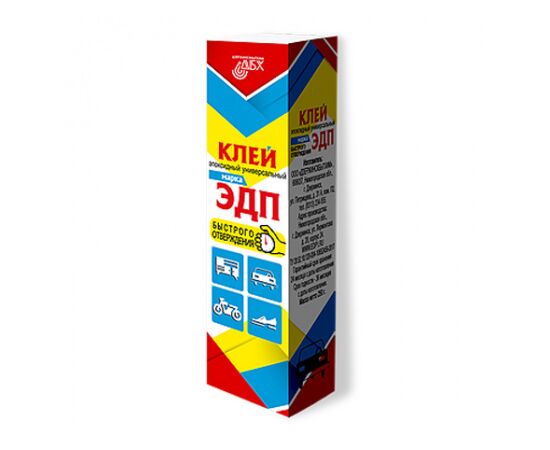 Клей ЭДП предназначен для склеивания металла, керамики, стекла, древесины и других материалов, для заделки отверстий и трещин. Может быть использован в качестве лакового покрытия. Представляет собой смолу, вязкой массы от желтого до светло-коричневого цвета, без примесей. Клей водо- и маслостоек, является хорошим электроизолятором. Готовится непосредственно перед склейкой. Эпоксидную смолу смешивают с отвердителем в определенном соотношении (примерно 1:10). Разводить нужно только разовую порцию клея, так как он быстро схватывается и становится непригодным для работы. Объем — 280 гр.