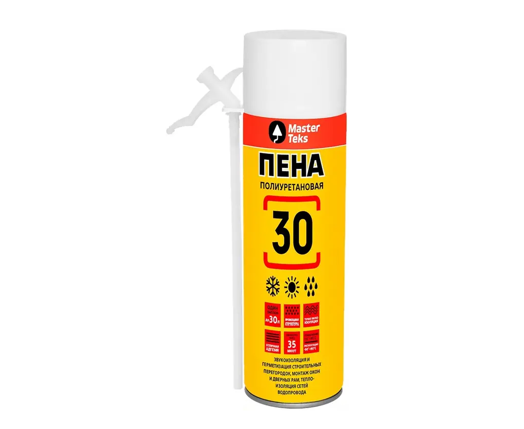 Пена монтажная MasterTeks 30 полиуретановая бытовая, всесезонная, 350 мл