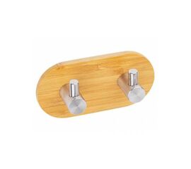 Планка самоклеящаяся 2 крючка VIRGO, нержавеющая сталь/бамбук, блистер, PERFECTO LINEA