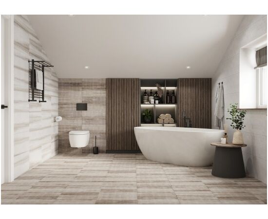 Керамическая плитка из коллекции Grunge представляет собой универсальное решение для оформления интерьеров в ванной, кухне и гостиной. Настенная плитка серого цвета с матовой поверхностью и дизайном, имитирующим дерево, придает помещению современный и стильный вид. Такой выбор позволяет легко интегрировать плитку в различные стили оформления, от индустриального до скандинавского.
