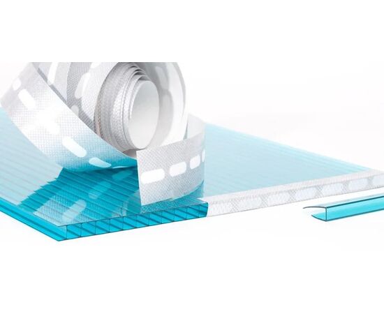 Применяется при монтаже конструкций из сотового поликарбоната. Основой ленты является изоляционный металлизированный материал, на который нанесен долговечный клеевой слой. Колебания температуры не оказывают на характеристики ленты практически никакого воздействия. Лента имеет высокую влагостойкость. Она может принимать форму нестандартных контуров и поэтому хорошо подходит для уплотнения (герметизации).