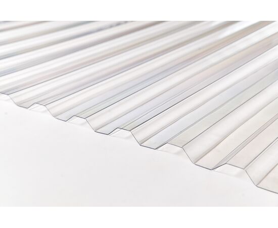Кровельный монолитный поликарбонат 0,8 мм трапеция (прозрачный) - профилированный (гофрированный) поликарбонат, обладая всеми достоинствами монолитного, отличается особой прочностью, которую придают ему рёбра жёсткости, образованные профилем.