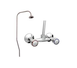 Двухвентильный смеситель для ванны и душа RUBINETA с душевой трубой, аэратором и подводкой. Тип: Смеситель Назначение: Для ванны и душа Монтаж: На стену Механизм: Двухвентильный Материал: Латунь Цвет: Хром Поверхность: Глянцевая