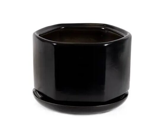 ГОРШОК ДЛЯ ЦВЕТОВ керамический "Меркурий" № 2 18*14 см черный с подставкой