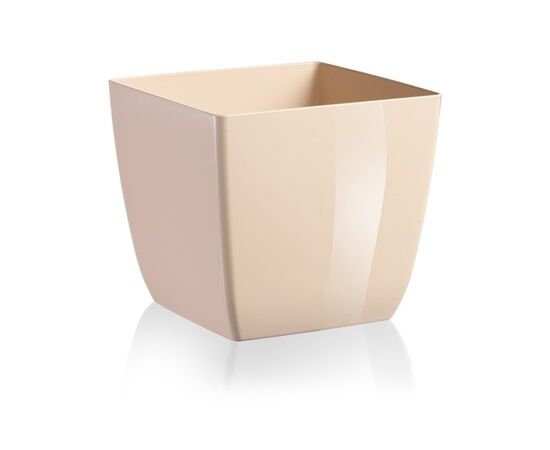 Цветочный горшок квадратный, предназначенный для выращивания различных растений. Выполнен в нейтральном бежевом цвете, который легко вписывается в любой интерьер и не отвлекает внимание от растений. Этот теплый, универсальный оттенок отлично сочетается как с классическими терракотовыми и белыми горшками, так и с современными кашпо в различных тонах.